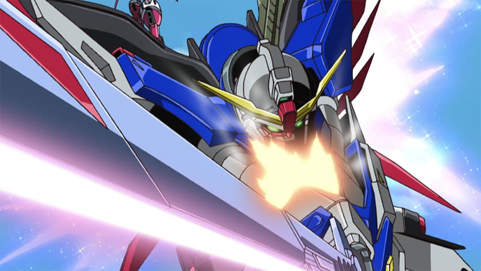 The ZAFT renew their attack on Orb. Shinn and Rey enter the battlefield in the Destiny and Legend, and Athrun comes to Kira's rescue with his new Infinite Justice Gundam. While the four Gundams clash, the battle situation abruptly changes, and Talia orders the ZAFT to withdraw.