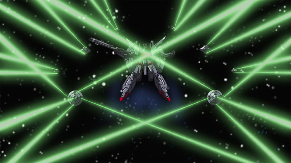 Having eliminated Requiem's first relay station, the Archangel and Eternal rush to the moon to join the attack on the Daedalus base, only to find their way barred by the mobile fortress Messiah. Kira tells Athrun and the Archangel to continue on and destroy the Requiem cannon, while he and the Eternal stay behind to deal with Messiah.