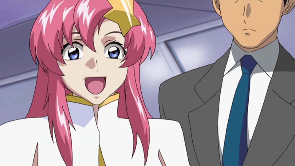 As the battle rages, Athrun waits on the sidelines for a chance to talk to Dullindal. He is surprised to encounter a young woman who looks just like Lacus, and is even more stunned when the impostor greets him as if they were long-separated lovers.