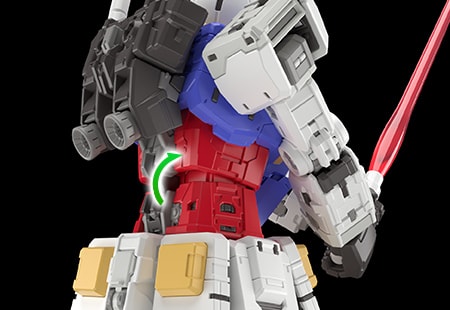 不仅仅依靠零件间相互卡合固定,而是在各个部位使用锁扣结构,防止零件的脱落,得以表现RG系列独有的动态姿势变化。
