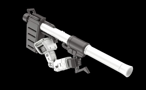 超级火箭炮采用了可延长炮身的滑动结构。有了此结构后,使得机体在伸直手臂的状态下依然可扛起超级火箭炮,演绎出富有力量感的姿势。