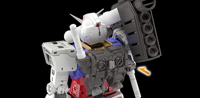 推进背包和腰部内藏了2个连接孔,用于连接武装和可动底座。未使用时分别由可动式盖板覆盖,以避免破坏设计感。