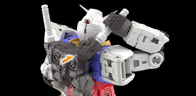 机体头部借由成形色的分色设计而成,就连双眼/主监视器/弹鼓/面部散热口等细处都增添了细节。即便高达头部用色复杂,亦可以较少的拼装步骤完成印象中的造型。
