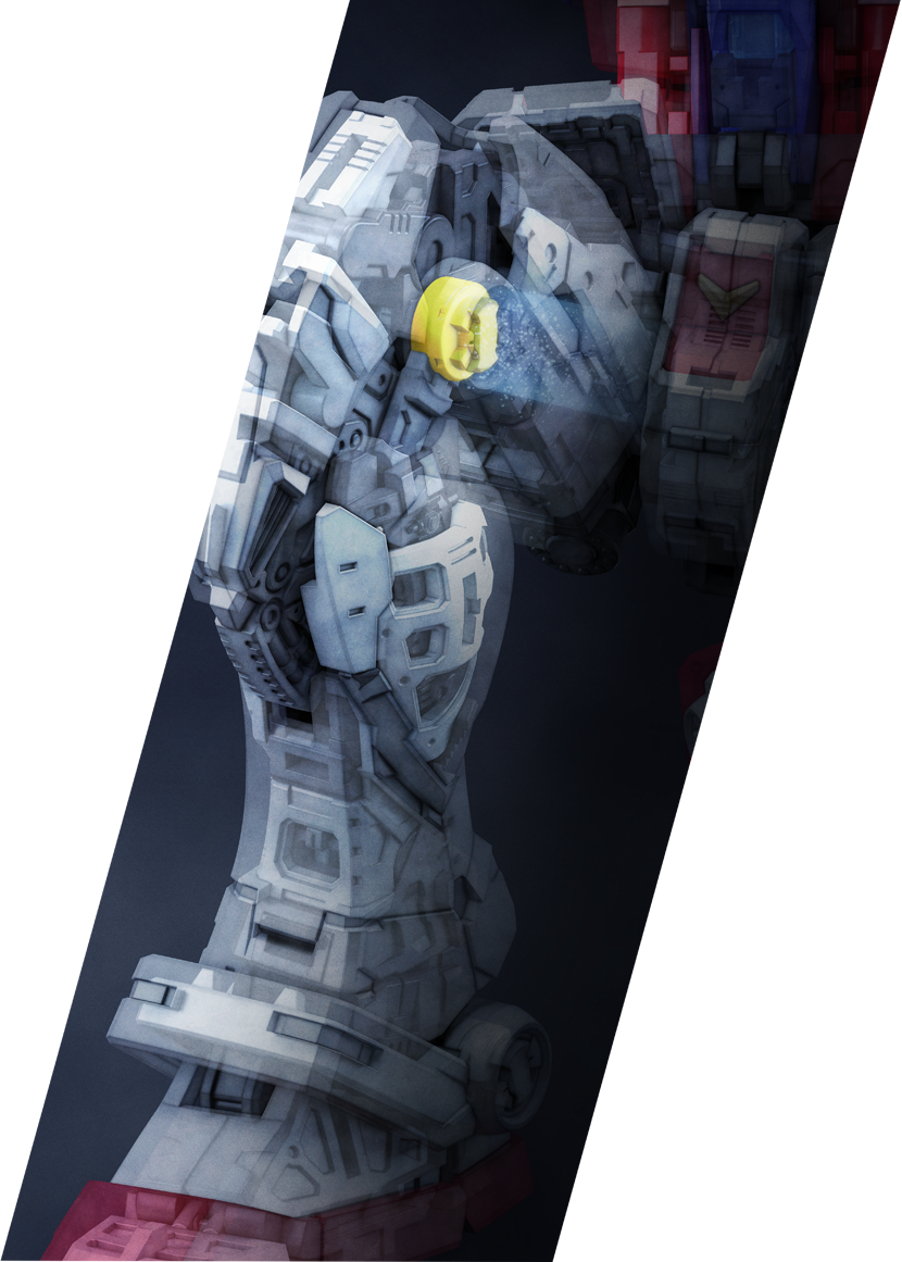 核心战机可变形为核心区块。不仅可以重现小型可变战斗机形态,更在结构紧凑的核心区块中内置了全新开发的辅助关节结构,有助高达实现更自由的动作姿势。