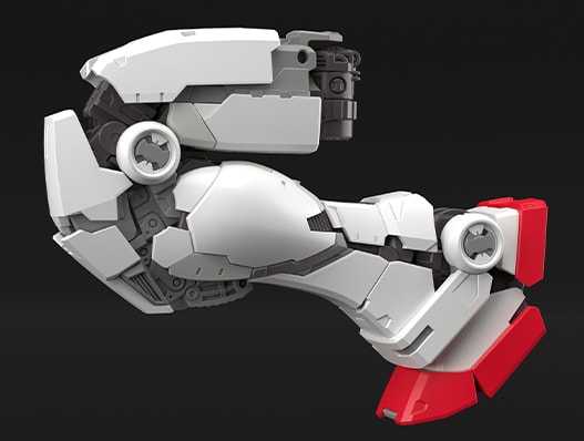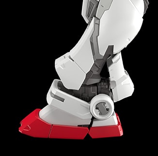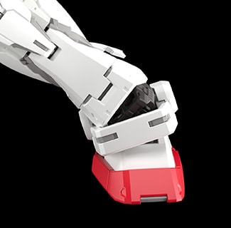 小腿处的装甲可展开,提升前后方的可动范围。除此之外,脚踝采用了2轴可动设计,横向动作时可免受脚踝装甲的干扰。