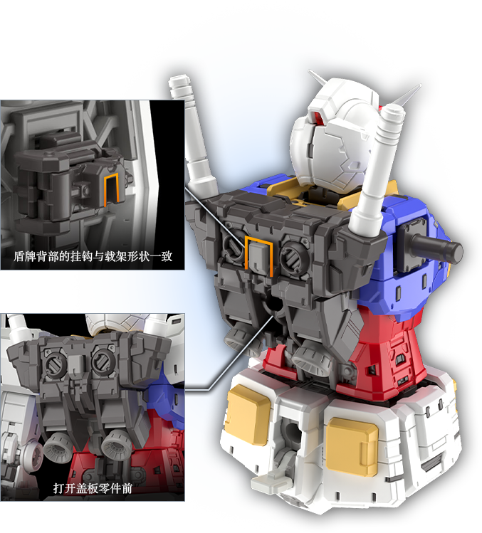 机体背部采用独立的锁扣零件。可用来衔接A零件(上半身)及B零件(下半身),确保其牢固连接。