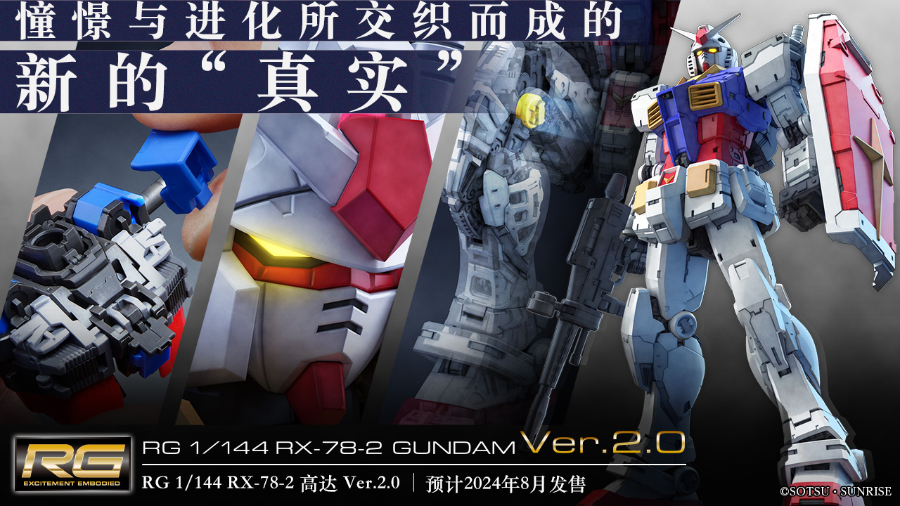 2010年7月发售的「RG 1/144 RX-78-2 高达」,是将当初于台场建造的1/1比例的高达立像定义为“实物”并压缩至1/144比例着手开发而成的。