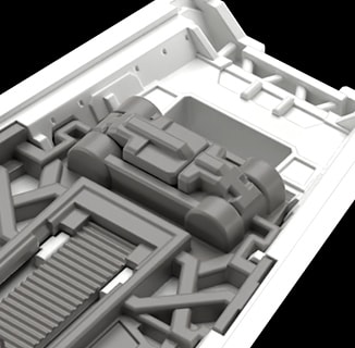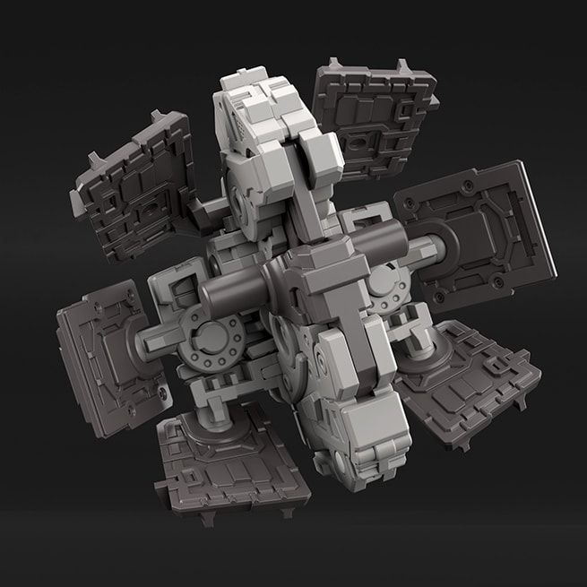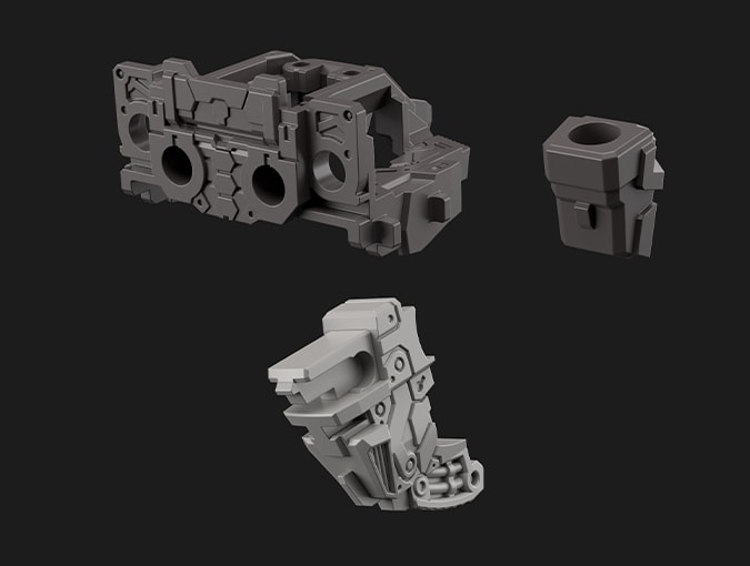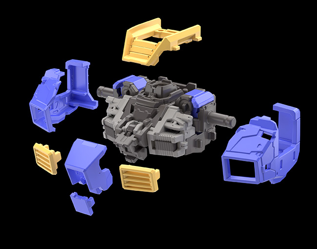 通过大量使用滑动模具进行零件成型,赋予零件各个方向上的细节。此设计不仅提高了精密度,更减少了拼装过程中必须拼装多个零件的必要性,提高拼装的便利性并缩短拼装时间。