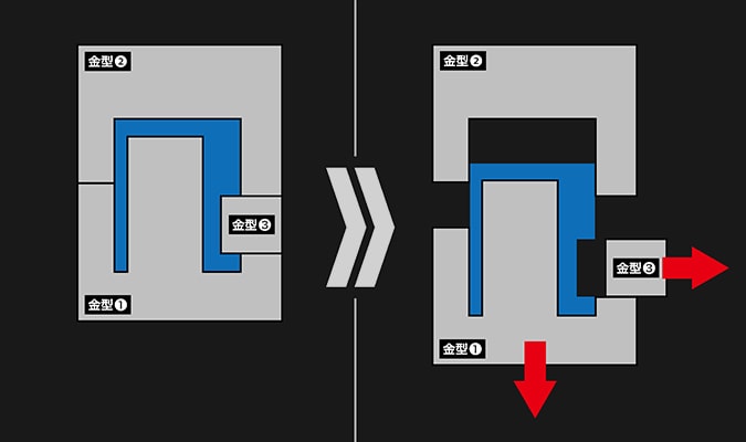 一般的塑料成型,通常是往上下两面刻有立体图样的模具里灌入树脂而成。成型后方能将上下模具剥离,因此无法于零件侧面加入细节或孔洞等等。然而滑动模具可横向嵌入多个模具(滑动模具),来解决了上述问题。根据使用方法不同,甚至可在不分割圆柱型零件的情况下实现一体成形,从而增添零件细节,进一步缩短拼装过程。