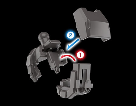 组成「手部」的零件像木制积木一样,采用了组合后即锁定的新设计,该结构使机体手部在承重时仍不易脱落。