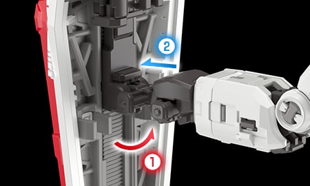 采用可动式的光束军刀载架。可在不干涉光束军刀的情况下背负超级火箭炮。不仅如此,该结构亦使得拔出光束军刀的动作更显自然流畅。