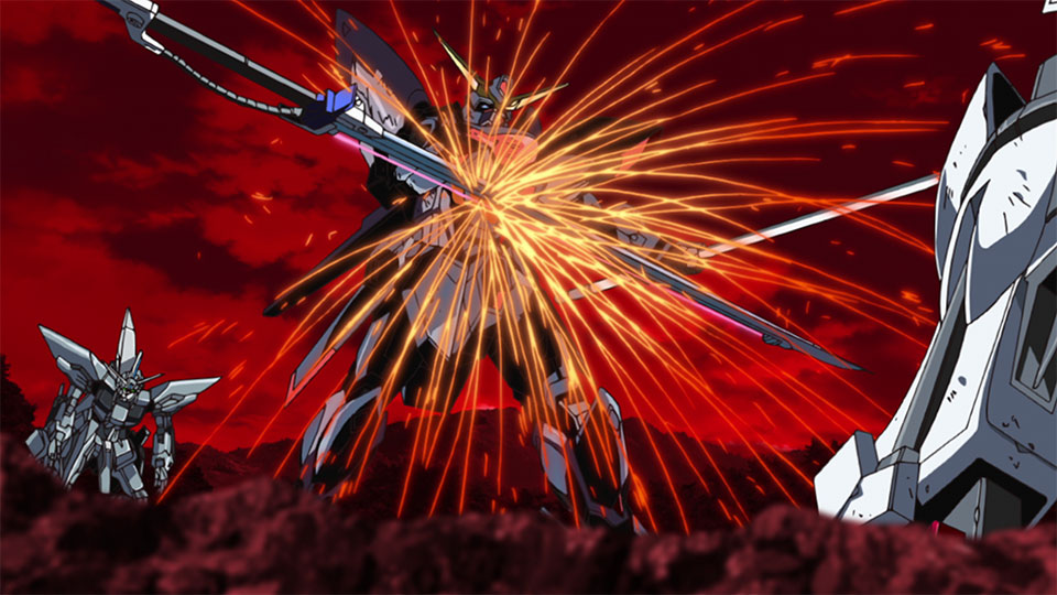 「由于『血腥情人节』惨剧,地球和PLANT之间局势紧张,眼看着就要演变成正式的武装冲突……」。 MS队势如破竹般逐个击败了地球军的MA军和战车。